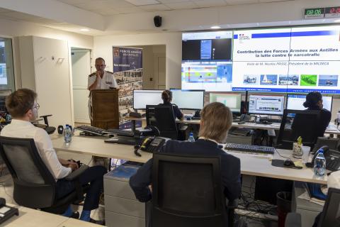 En Martinique, le Président de la MILDECA a eu l’opportunité de visiter le Centre opérationnel des forces armées aux Antilles (CENTOPS), placé sous le commandement du contre-amiral Jean-Baptiste Soubrier, qui joue un rôle central dans la lutte contre le narcotrafic maritime. Véritable tour de contrôle des opérations, il planifie, coordonne et suit en temps réel les actions menées par les forces armées et leurs partenaires (douanes, gendarmerie, police, OFAST, services de renseignement). Un dispositif grâce auquel la France dispos d’une capacité d’anticipation et d’intervention rapide sur l’ensemble de la zone caraïbe, afin de protéger ses territoires et de participer à la stratégie du « bouclier » contre l’acheminement de stupéfiants vers l’Europe.